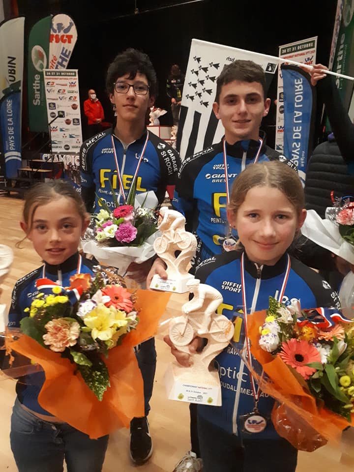 Ce fut un week-end mémorable aux championnats de France VTT FSGT à la Chapelle St Aubin (département 72), avec quatre 2ème places et quatre 4ème places pour le to2p, plus d’autres top 10 ! On a titillé les podiums et les victoires. Bravo à chacun des participants pour votre abnégation, dépassement et pour être aller au bout de vos forces. Bravo à tous les supporters qui ont donné de la voie et galvanisé les compétiteurs !! Bravo pour votre état d’esprit et la cohésion du groupe. Les grands ont montré exemple en faisant rêver les plus jeunes. Notre sport est fait de détails, d’effort et de quelques sacrifices en amont pour espérer atteindre ses objectifs. Vous trouverez plus d’infos et de photos sur notre page Facebook (accessible même sans compte Facebook) et ici un lien WeTransfer avec plus de 250 photos prises par Katia Quéméneur (lien actif jusqu’au 8 novembre) et d’Hélène Donval ici.