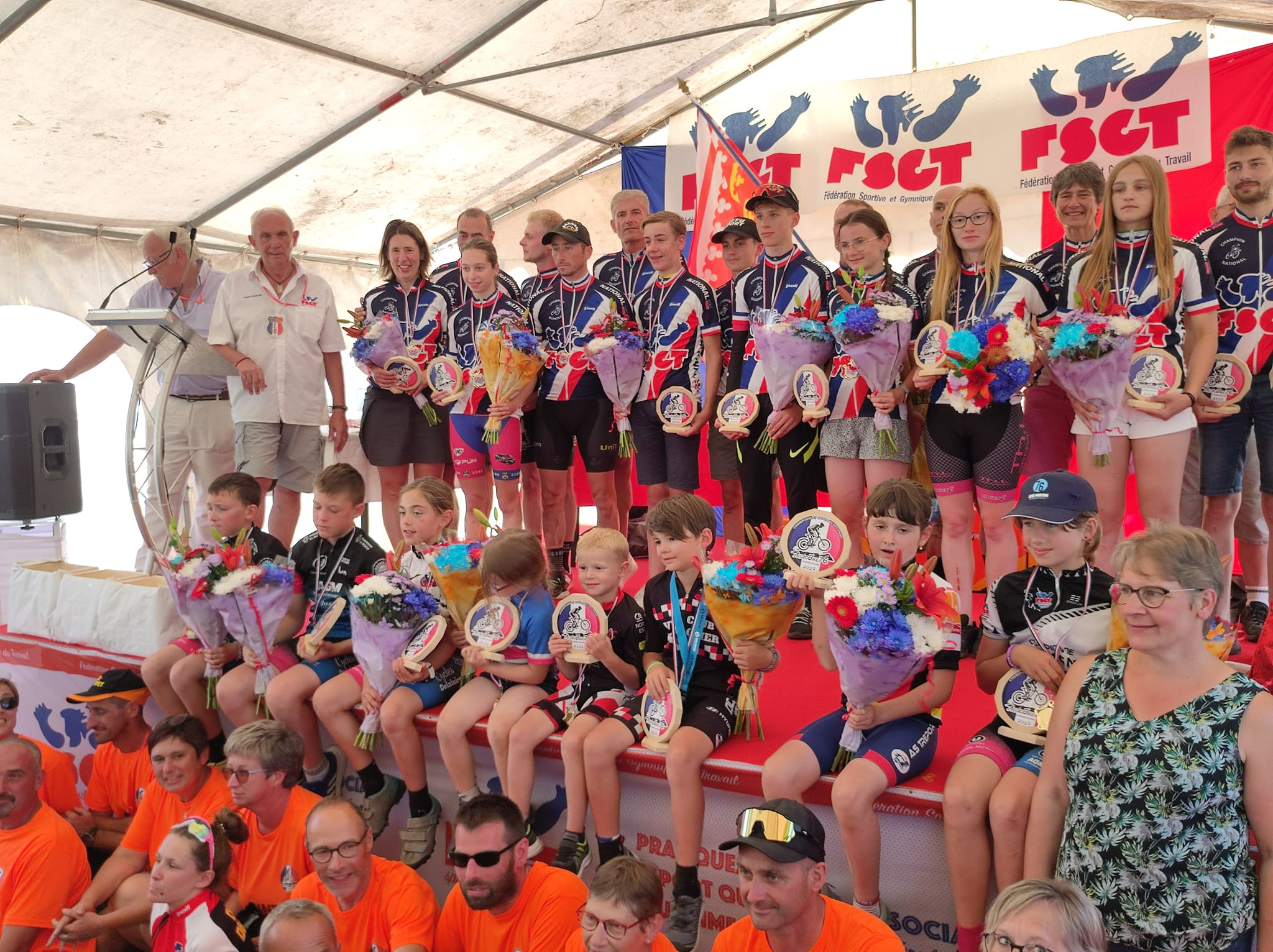 Le to2p a reporté six titres de champion et bon nombre de podiums ! En résumé, les classements (pour les détails, voir https://www.fsgt.org/activites/velo/epreuves/vtt-r%C3%A9sultat-du-championnat-national-fsgt-2022-des-9-10-juillet-%C3%A0-le-mesnil-) sont :