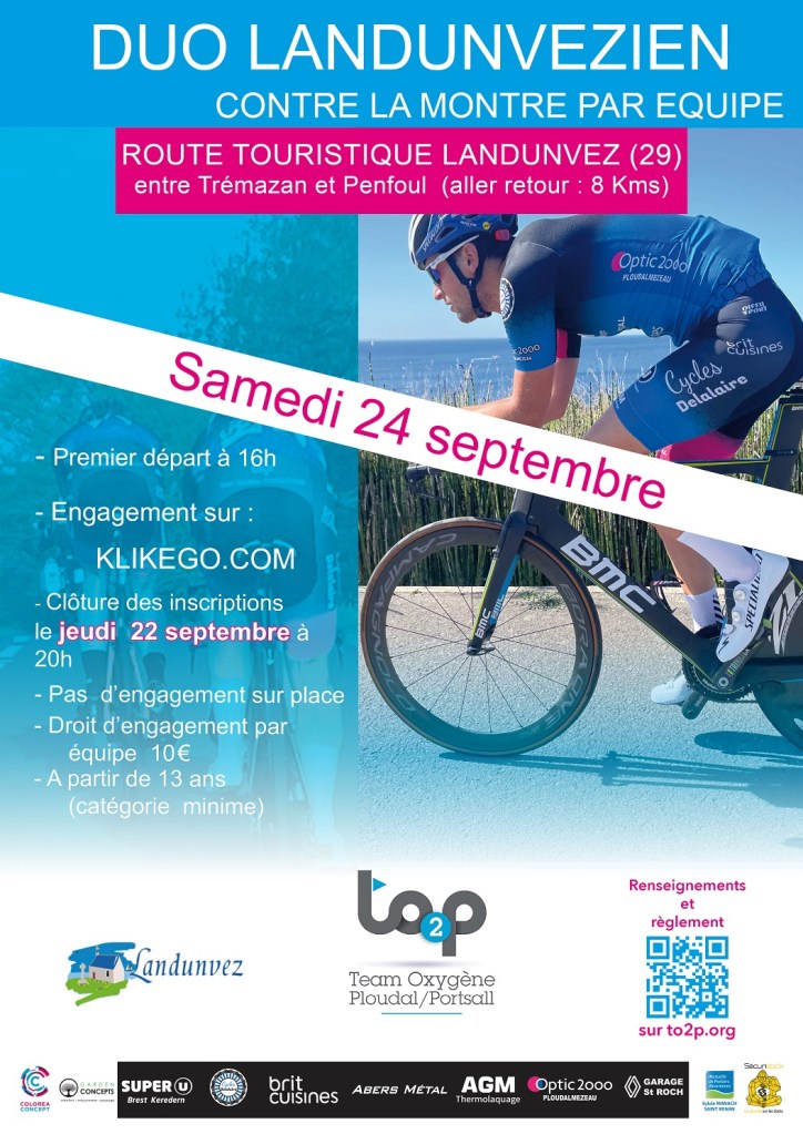Avec l’appui de la commune de Landunvez, le club cycliste TO2P organisera la première édition de la course cycliste le « Duo Landunvezien » le samedi 24 septembre 2022. Il s’agit un contre-la-montre par équipes de deux avec un aller-retour sur la route touristique entre Trémazan et Penfoul. Le plan du parcours est visible sur https://connect.garmin.com/modern/course/120249168
