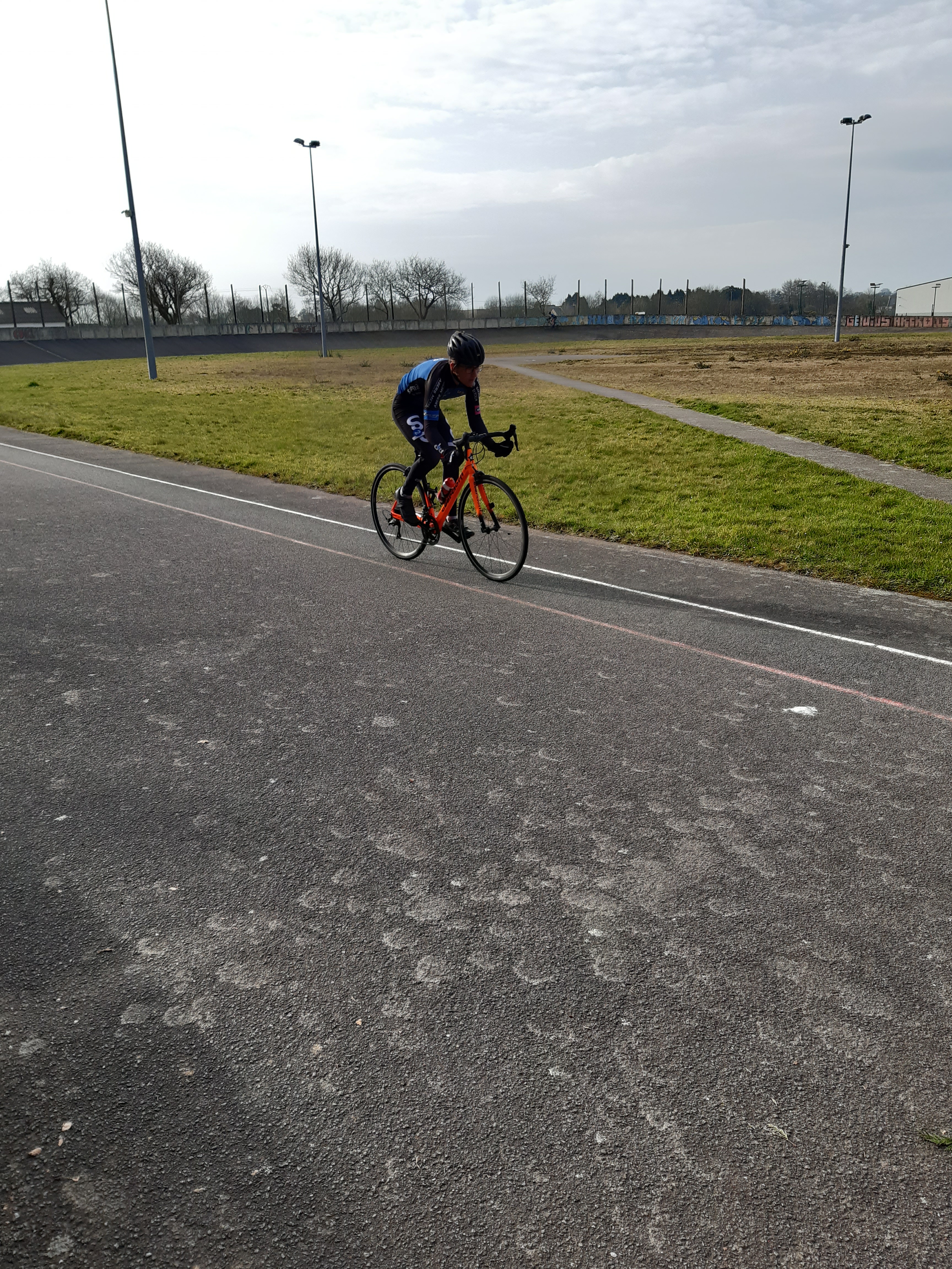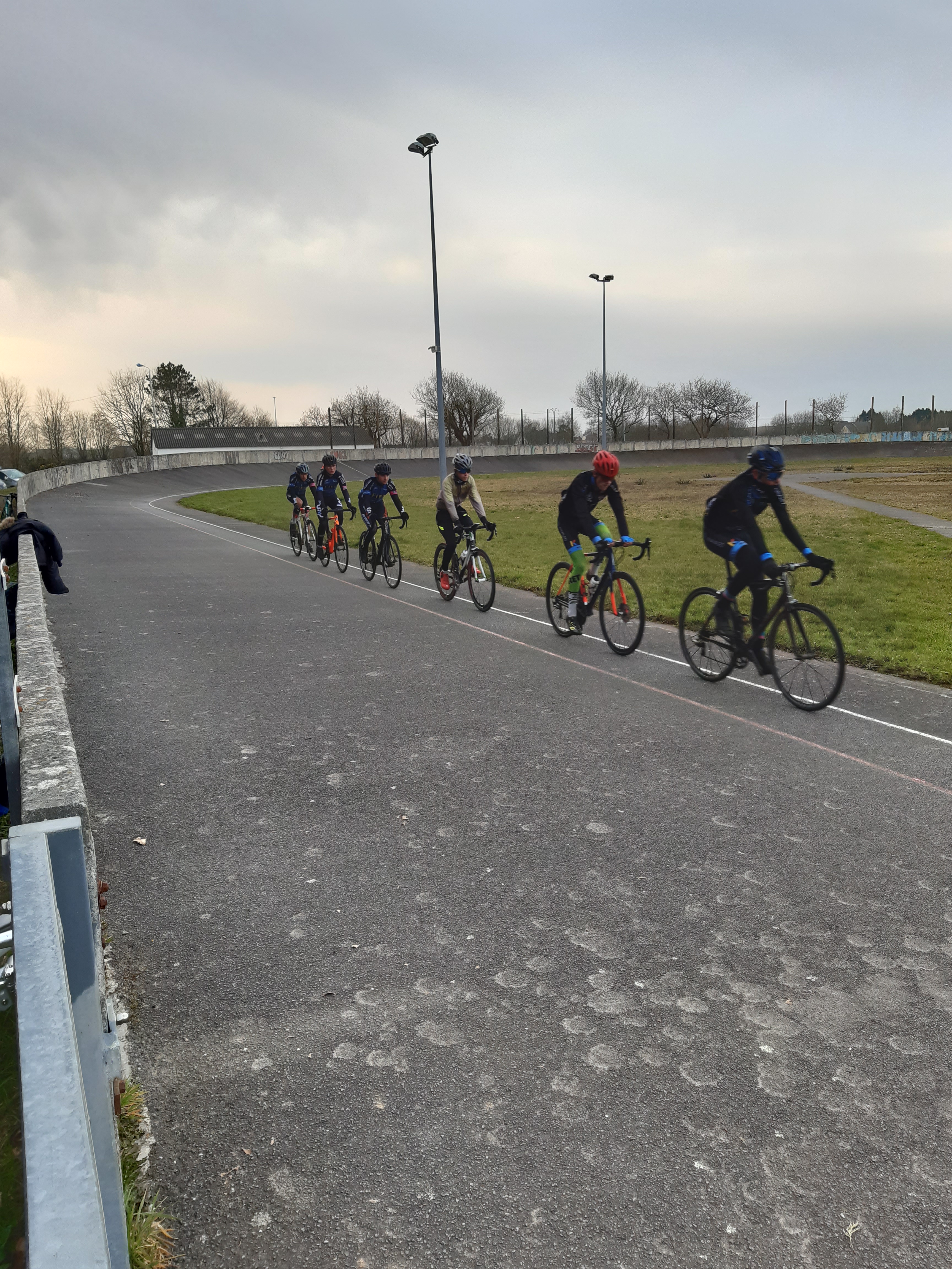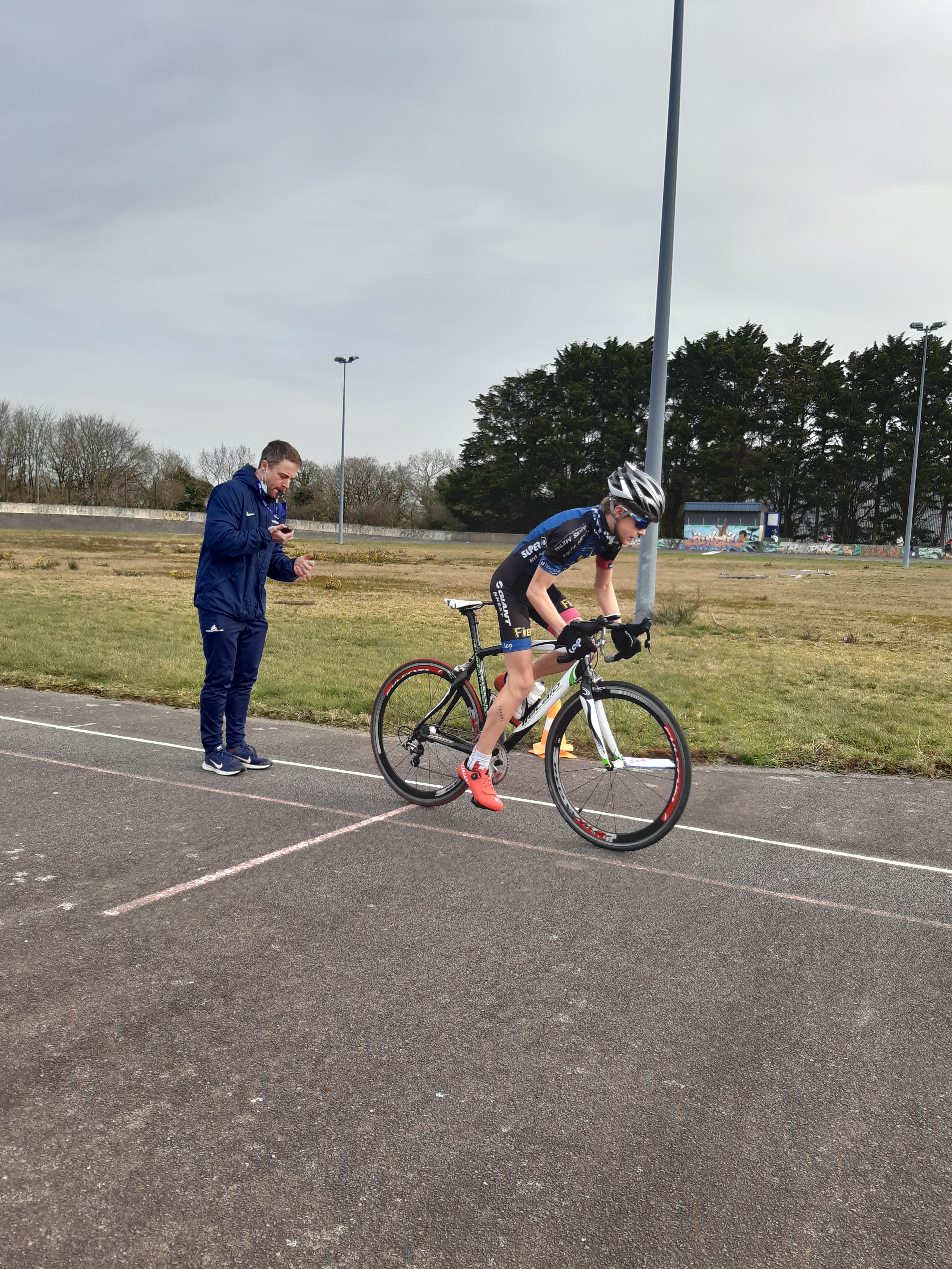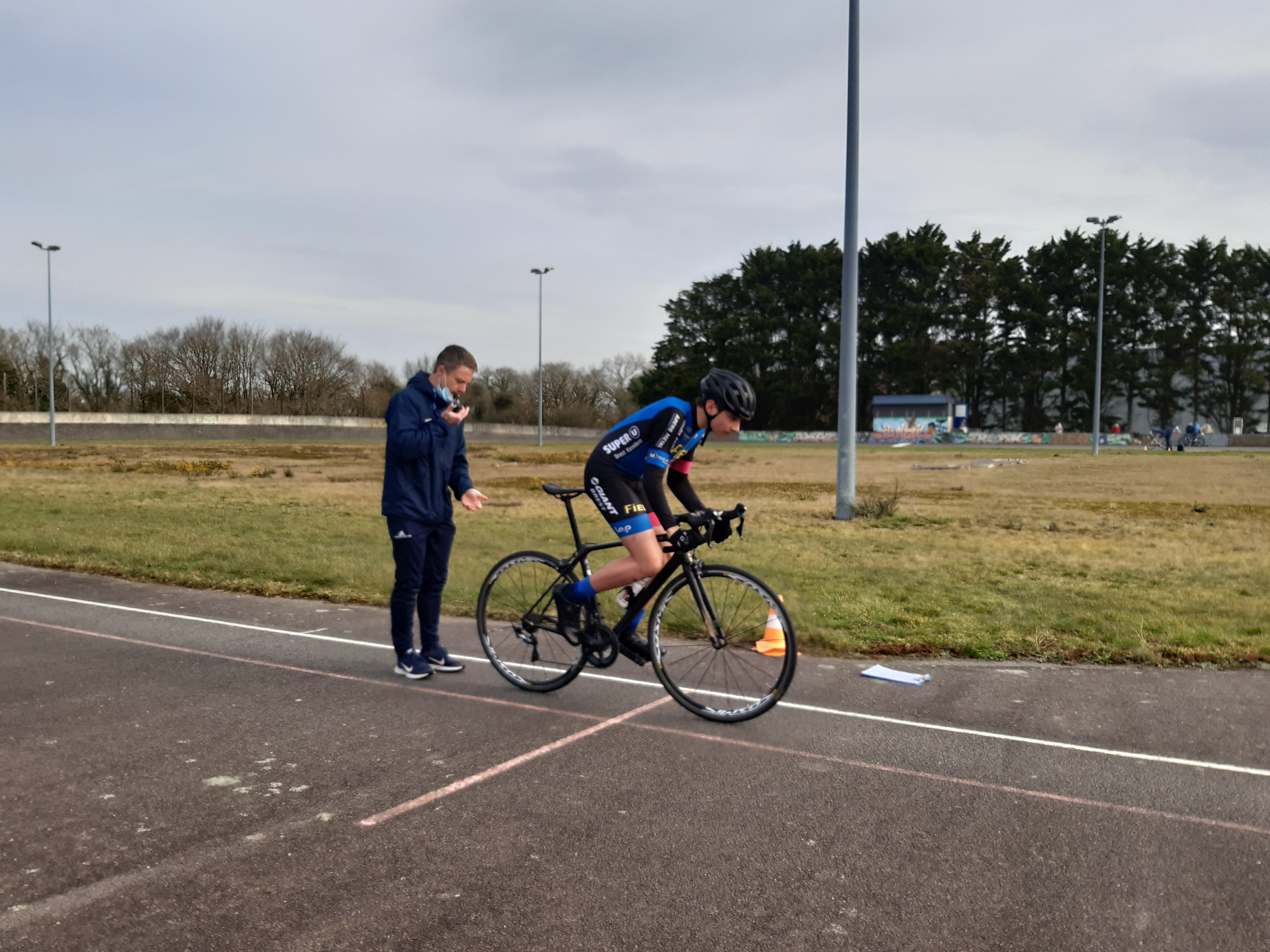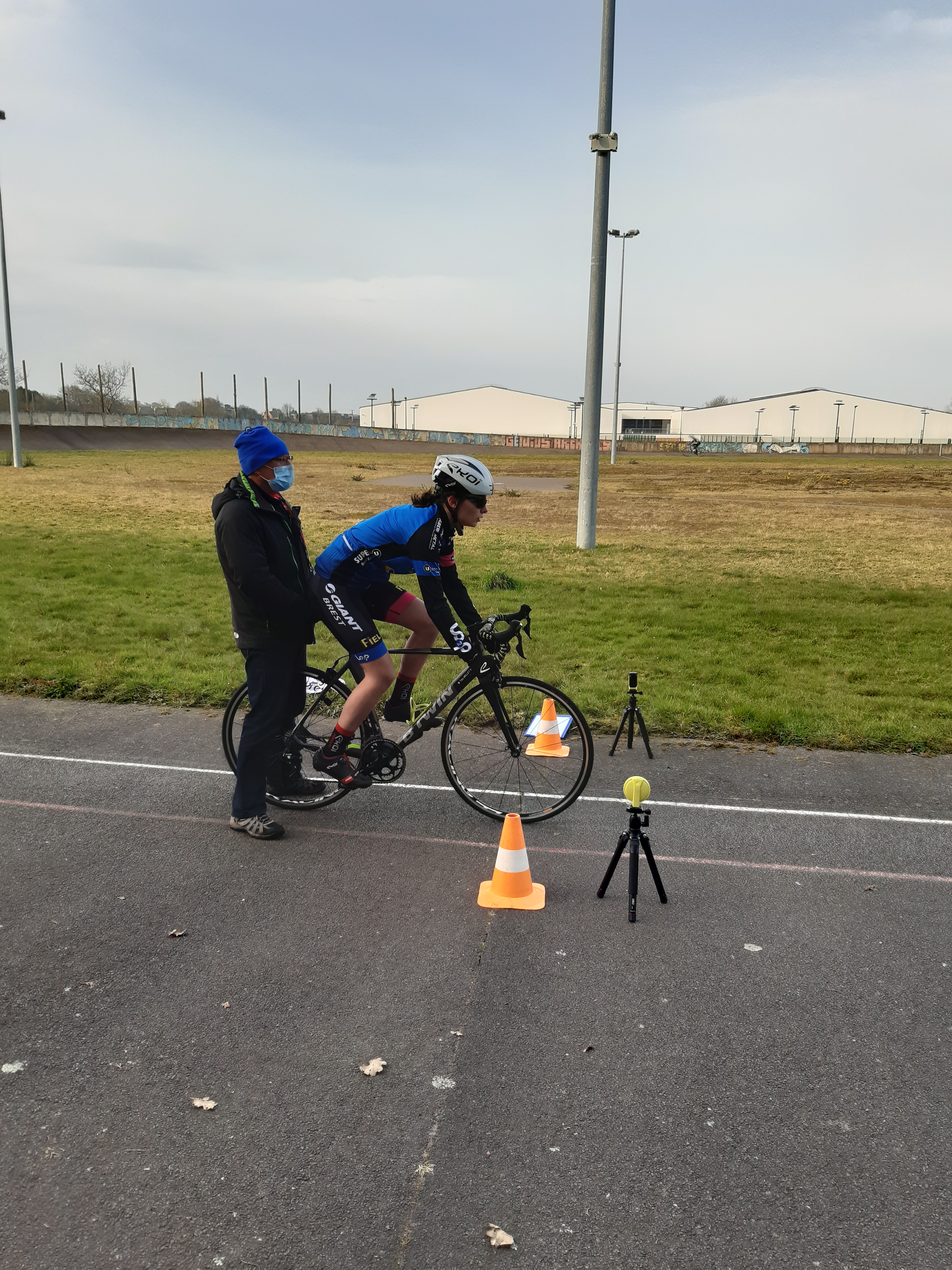 Encadré par Hervé, Jean Philippe et David, six de nos cadet(te)s – Benjamin, Enzo, Maxence, Manon, Roman et Téa (Quentin et Emma sont en vacances) – ont participé ce matin aux tests de détection 15/16 ans organisés par le Comité Départemental de Cyclisme 29 au vélodrome de Guipavas, avec une quinzaine d’autres coureurs issus des clubs du département. De nouvelles expériences et un peu d’appréhension pour tous lors des trois épreuves : un 200 m départ lancé (vitesse), un 60 m départ arrêté sur le 50×14 (force) et, pour terminer, un 3000 m départ arrêté façon poursuite (endurance). Nos débutants sur piste ont tous ont pris du plaisir à fournir des efforts intenses sur l’anneau mais ils mesurent désormais le travail qu’attend les futurs pistards. David a pris ces quelques (mauvaises…!) photos.