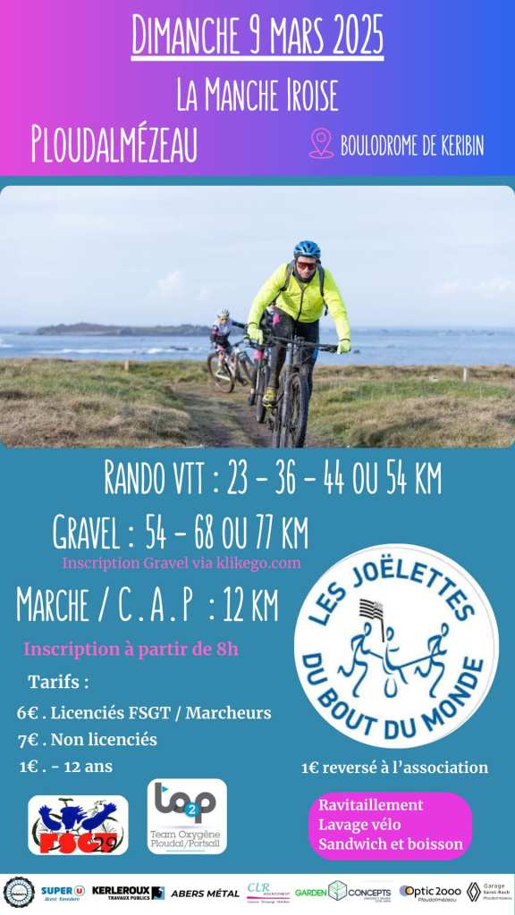Chaque année, le to2p soutient une association en lui versant un euro par inscription. En 2025, ce sera l’association les Joëlettes du Bout du Monde. Il y aura possibilité de faire un don à l’association qui sera présente le jour de la randonnée.