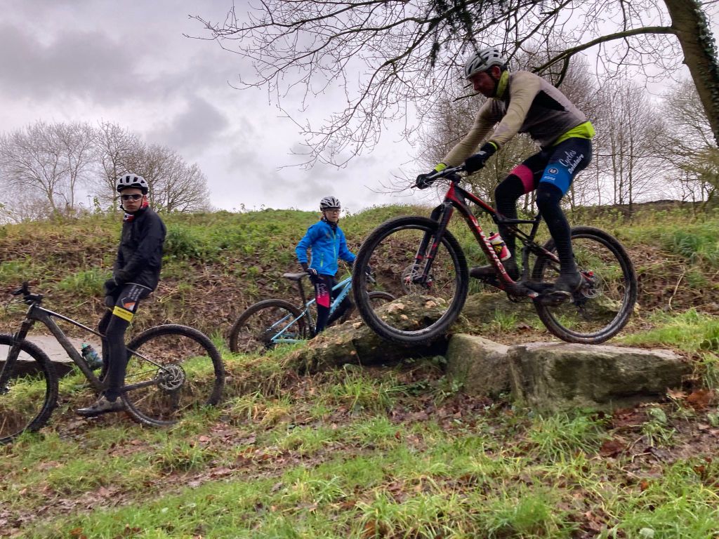 Afin de « rentabiliser » le déplacement à Loudéac, Jeff, Mikaël et Anthony ont mené le groupe au site VTT de la Rabine à 2 km du vélodrome pour une série d’ateliers (saut, franchissement, descente,..), tandis que David et Neil sont allés grimper la mythique montée du Mur de Bretagne, l’arrivée de l’étape du Tour de France (une montée de « seulement » 2,2 kilomètres en tout mais qui comprend un bon kilomètre à 10% de moyenne). Le groupe a quitté Loudéac vers 16h, heureux de sa journée et assuré de bien dormir la nuit suivante….